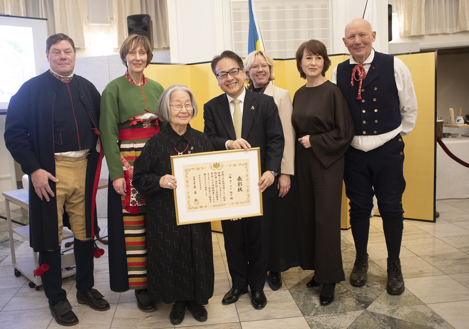 Under fredagens frostiga förvinterkväll i det japanska ambassadresidenset i Djursholm i Stockholm var det minst sagt dalatema. Där möttes man av festligt uppklädda kullor, masar och japaner i den stora samlingssalen, när japansk-svenska Keiko Yahata Larsson fick motta den japanska utrikesministerns utmärkelse för sitt livslånga och betydelsefulla arbete med utbytet mellan Sverige och Japan.