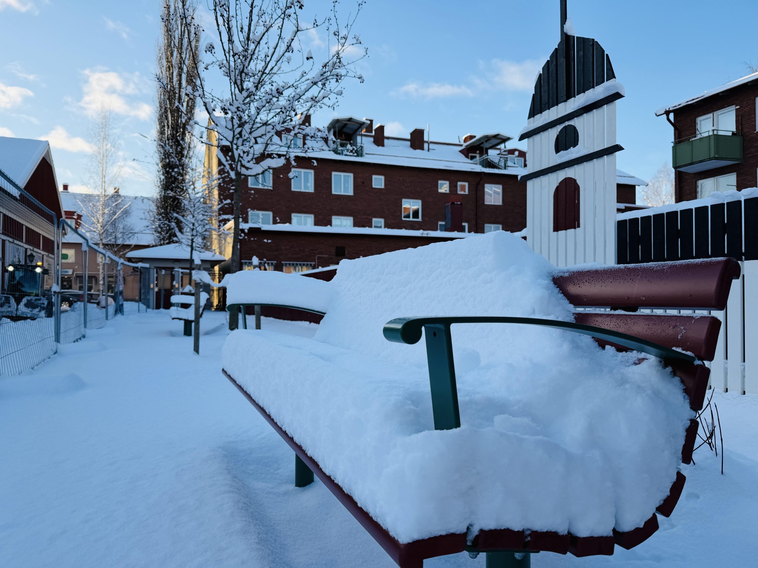— Tanken är att vi ska ha permanenta bänkar på torget vid fontänen framöver och då är det den här modellen som vi har tänkt oss. Så de här är testbänkar för att se hur de funkar och så, avslutar Layton.