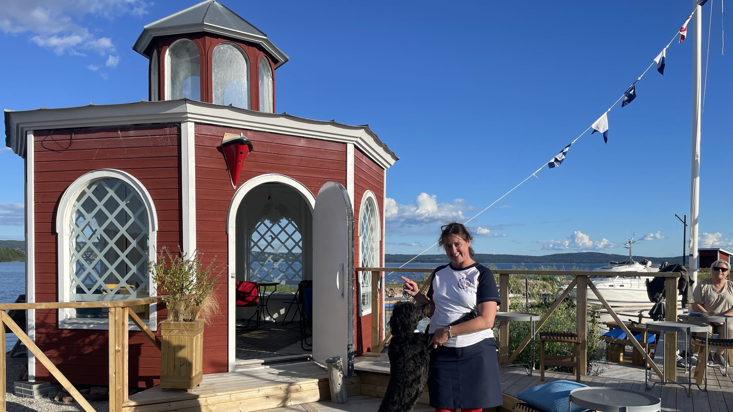 Kvällssolen glittrar i Siljan, båtar åker och lägger till och runt borden på det nybyggda däcket i hamnen sitter folk och äter och dricker. Jeanette far runt med snabba ben mellan borden, tittar så att gästerna har det bra och kliver in i den vita paviljongen som just nu håller på att fixas i ordning.