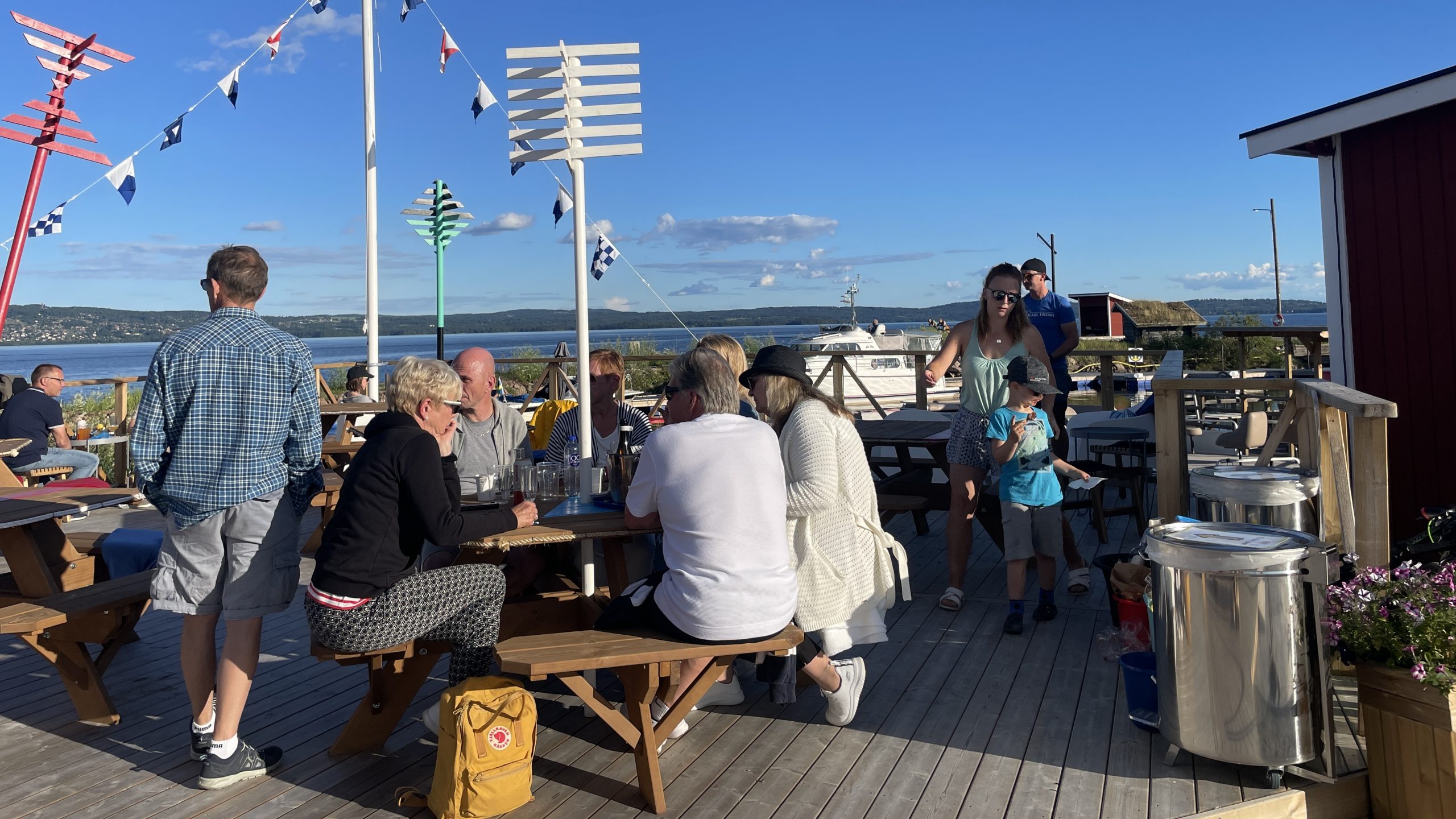 Förutom båt – och campinggäster släntrar det in bybor och andra flanörer som vill njuta av lite sjöbris och något att stoppa i magen. Förra året installerades Siljans enda tankstation för båtar här och det var i samband med det som Jörgen Pihlblad som är ordförande för båtklubben tyckte att man skulle kunna ha en liten servering här nere också vilket gjorde att han kontaktade Bistro Apan. Just i dag sitter han på bryggan och njuter av atmosfären här nere.