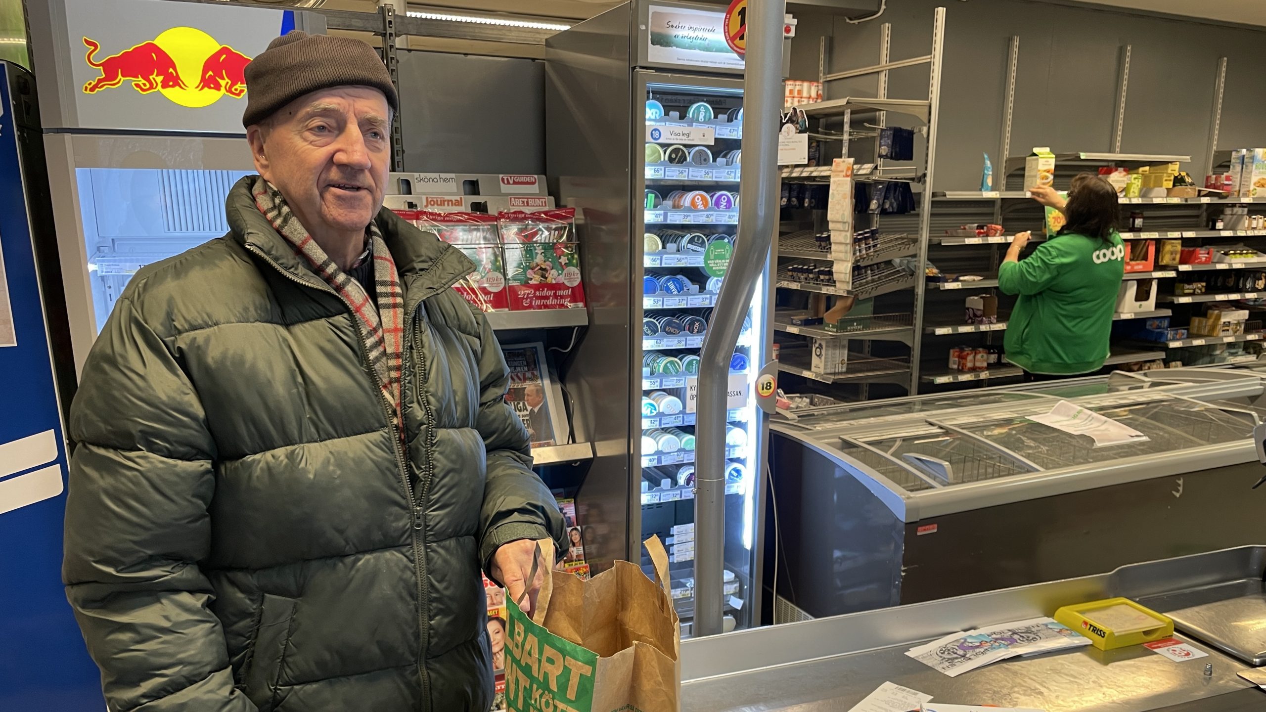 Bengt Boberg gör sina sista inköp i butiken innan det stänger igen och han är både arg och ledsen över att byns sociala träffpunkt nu försvinner.