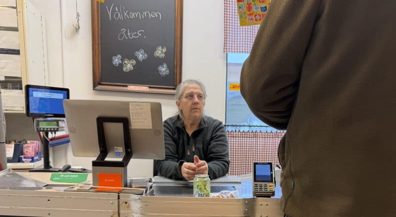 Det plingar till i dörren och en äldre herre kliver in för att hämta ut ett paket och köpa en kartong ägg. Runt 100 kunder om dagen är det som kliver in här, det är en viktig samlingsplats i byn som Monica fortfarande kämpar för att kunna hålla vid liv, men frågan är hur länge det går att ha råd att ha personal för att kunna hålla öppet.