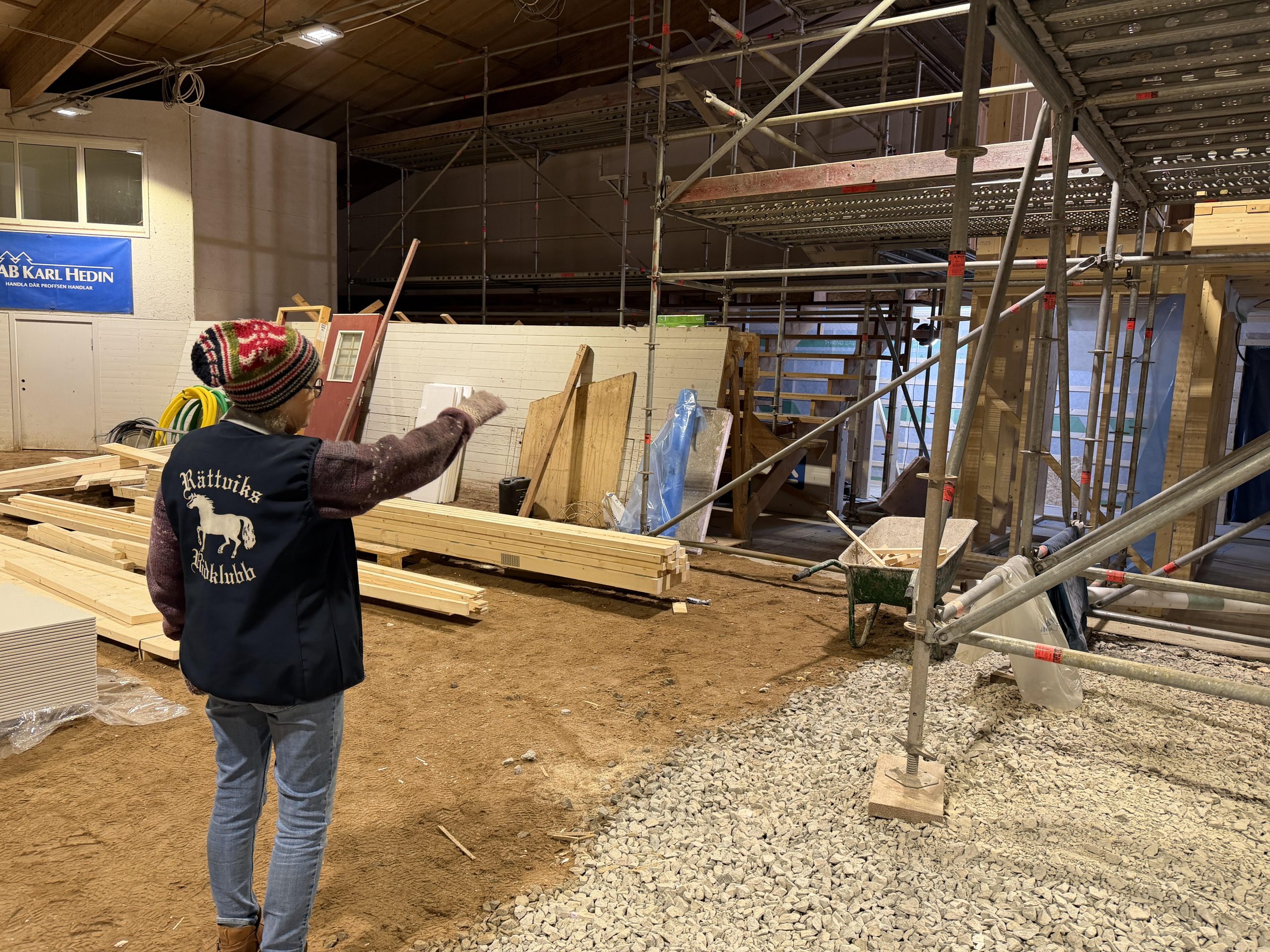 Just nu är området kring ridklubben som en stor arbetsplats. Bygget av ett nytt stall är i full gång och i ridhuset pågår arbetet med att bygga omklädningsrum, tvättrum för funktionärskläder, teknikrum och kontor bland annat. Det här är den största satsningen sedan klubben grundades i slutet av – 70 talet och det är tack vare stöd från Allmänna Arvsfonden som ridhuset nu får en rejäl upprustning.