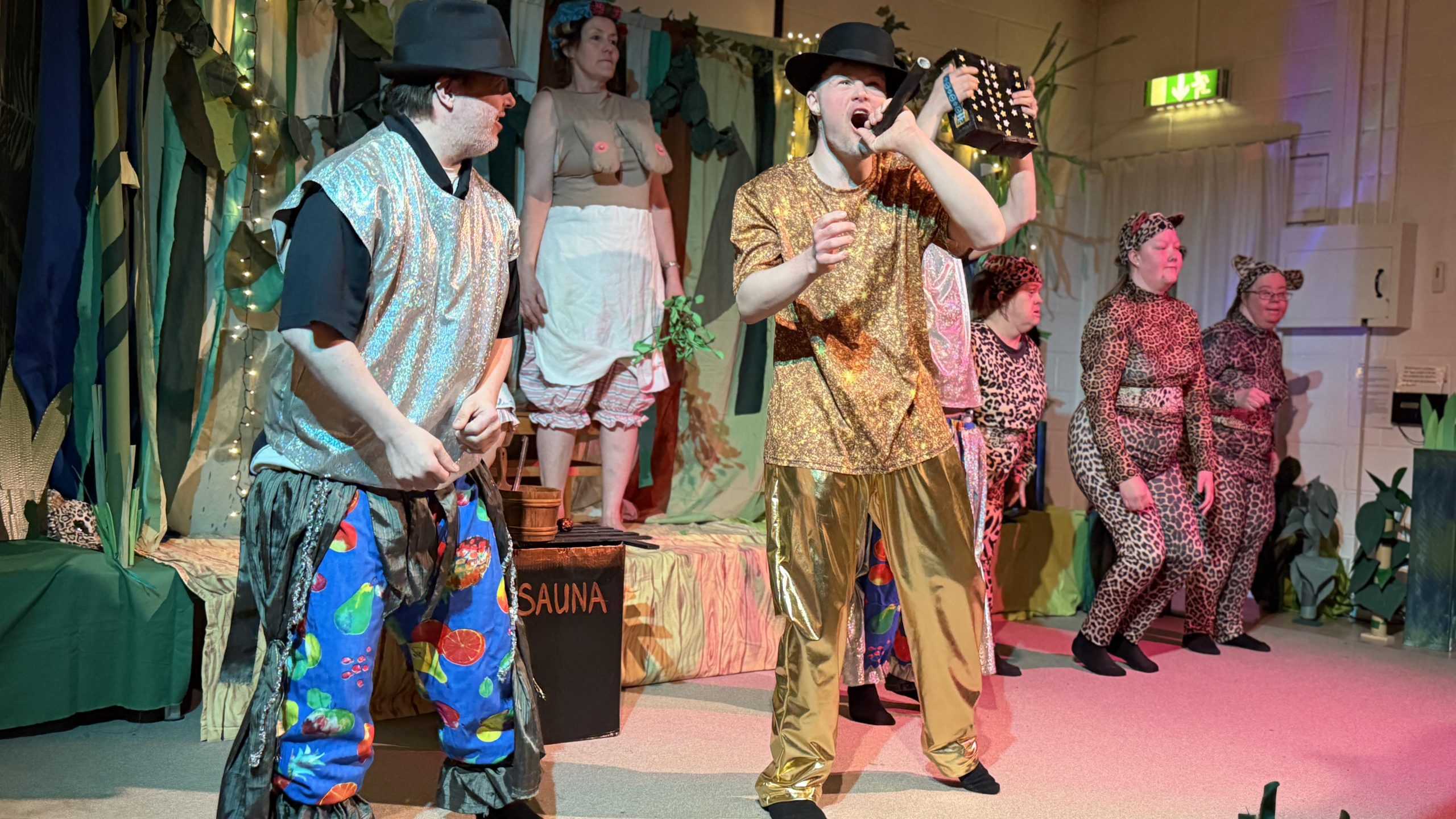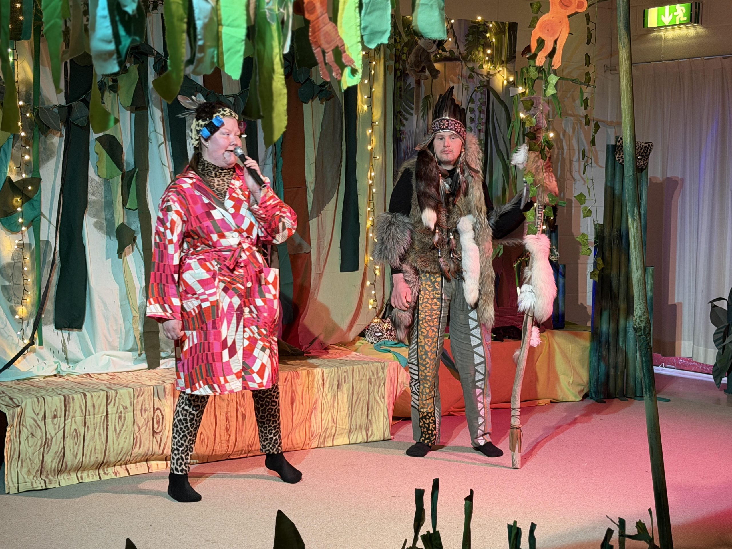 Det var fullsatt framför scenen när Robban, Kalle, Frej, Kitty, Bodil och Stina från Knutens dagliga verksamhet bjöd på den egenskrivna musikalen ”Kungen i Djungeln” på kulturhuset under torsdagen. Det var en imponerande föreställning med humor, sång och dans som de framförde för första gången någonsin inför en så stor publik.