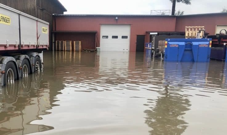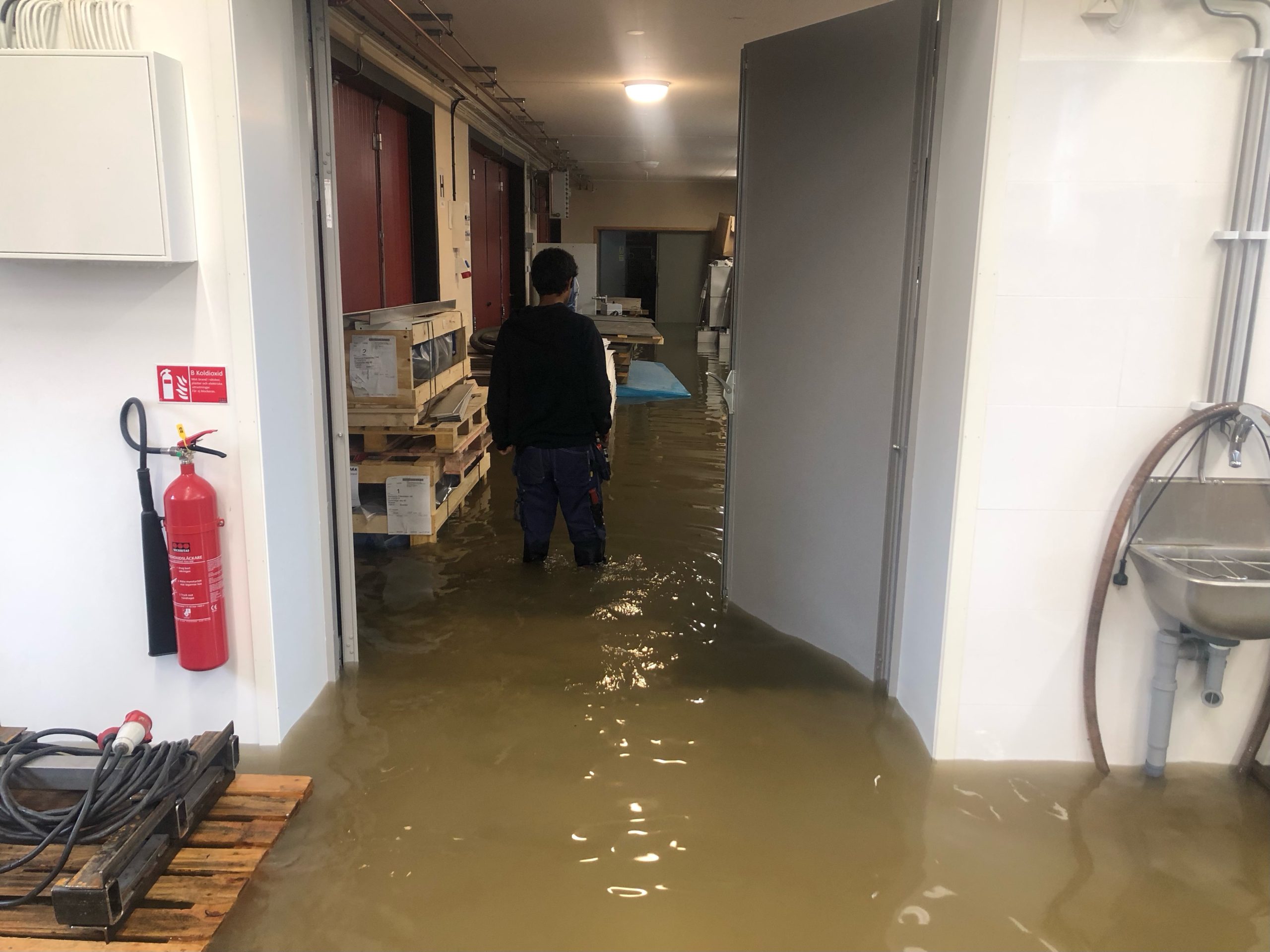 — Det började väl vid 13-tiden och sen steg bara vattnet, utanför är det väl 50 cm vatten som står och inne i lokalen cirka 15 centimeter, nu har vi fått gå ut och kan inte vara i lokalen, vattnet verkar dock börja sjunka undan nu, säger Gustav Nilsson, på Radonett som står utanför lokalen när vi får tag på honom på telefon.