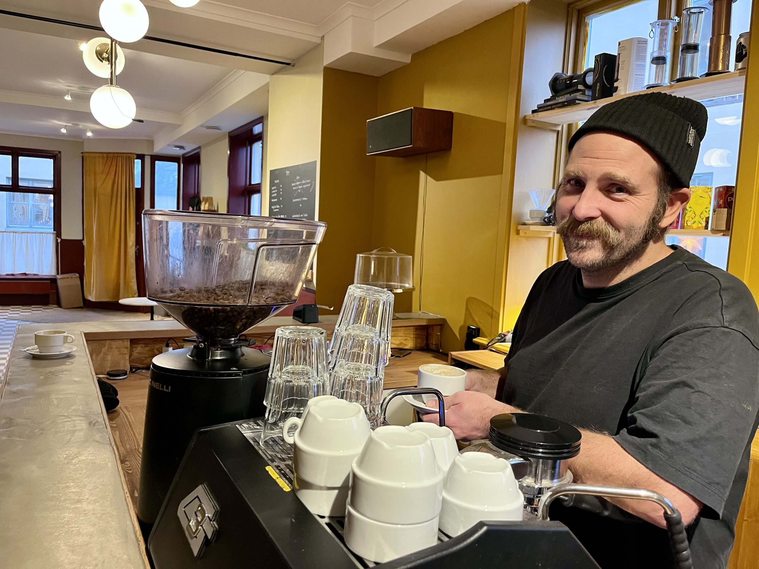 Efter många år som kafferostare är det nu första gången han får se sin produkt nå hela vägen till gästen, direkt över disken. Det sociala mötet kring kaffet har han saknat, och nu får det äntligen ta plats. Samtidigt återstår många frågor om hur verksamheten ska utformas – öppettider, utbud och helhetskoncept är fortfarande under utveckling.
