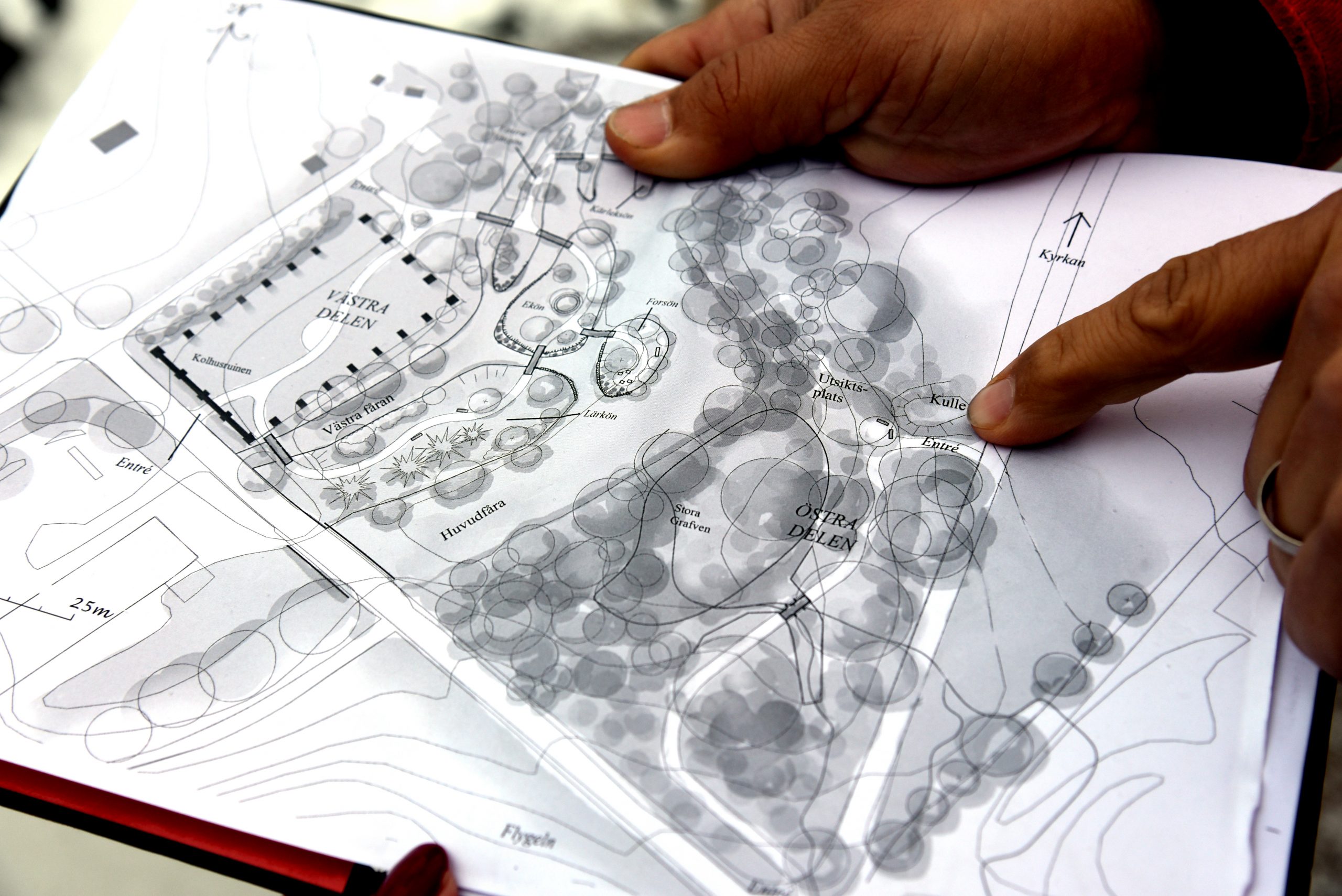 — Så fanns det ett kulturhistoriskt intresse från Länsstyrelsen, kommunen och markägaren Brita och även från Folke, Gunnar och jag som då satte i gång att planera det här med hur man skulle restaurera den här parken.
