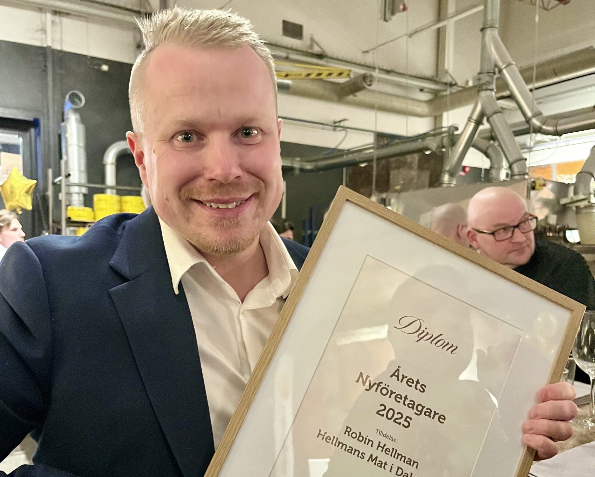 Årets Nyföretagare 2025 tilldelades Robin Hellman från Hellmans Mat i Dalarna AB. Juryn betonade hans förmåga att skapa ny energi i en etablerad verksamhet genom lyhört ledarskap och nytänkande.