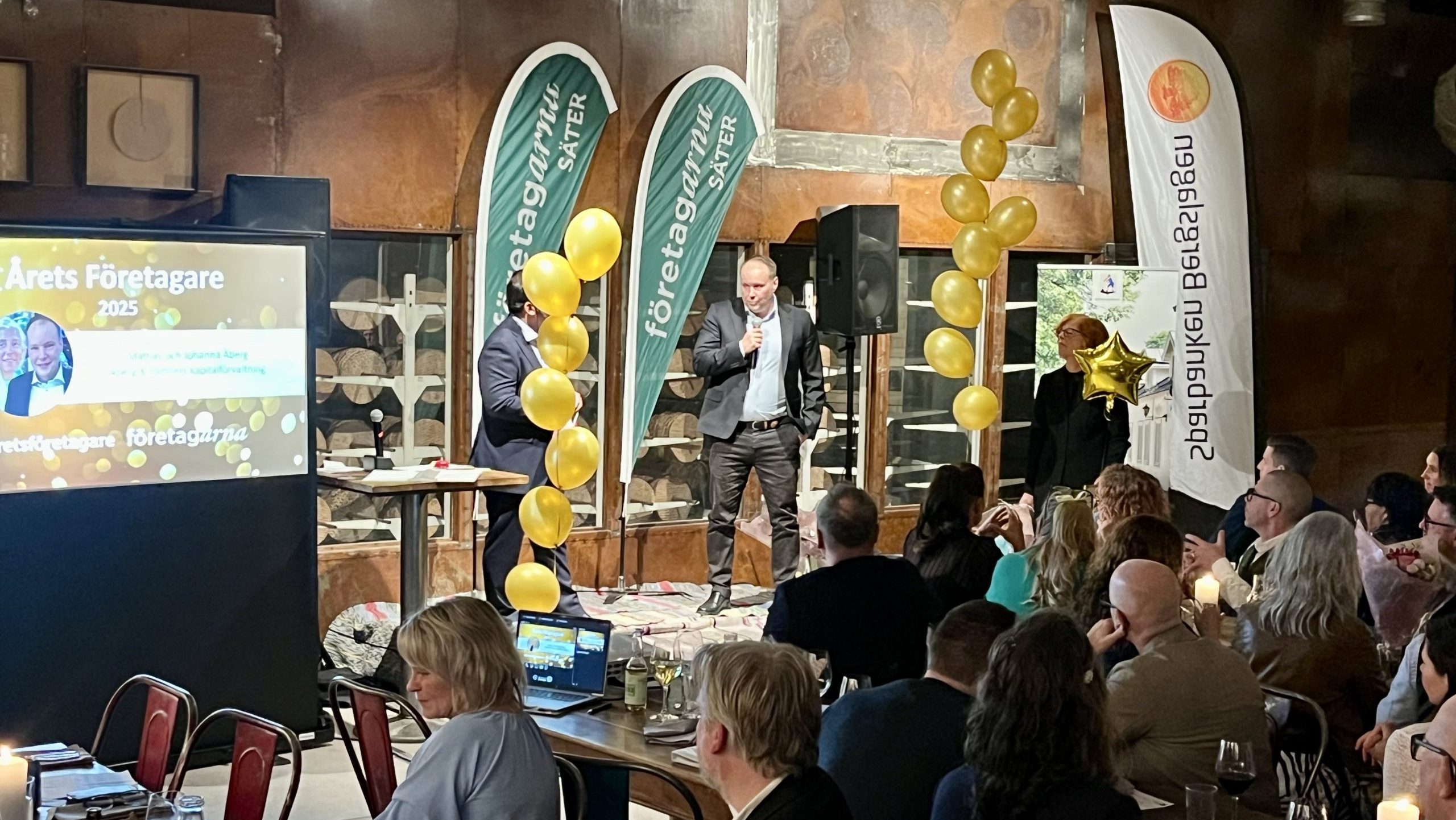 Den mest prestigefyllda titeln för kvällen, Årets Företagare i Säters kommun 2025, gick till Mattias och Johanna Åberg från Åberg och Partners Kapitalförvaltning AB. I och med vinsten går de nu vidare till Företagarnas regionfinal, med chans att nå hela vägen till den nationella finalen.