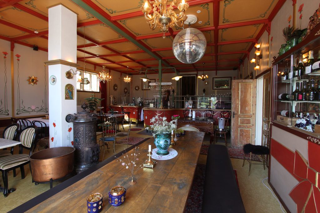 Sagt och gjort tömde han lokalen och påbörjade sin ombyggnad. Åkte runt bland gamla hus som skulle rivas och köpte upp inredning. Kombinerade det med sitt intresse för Art Noveau. Det var för tio år sedan.