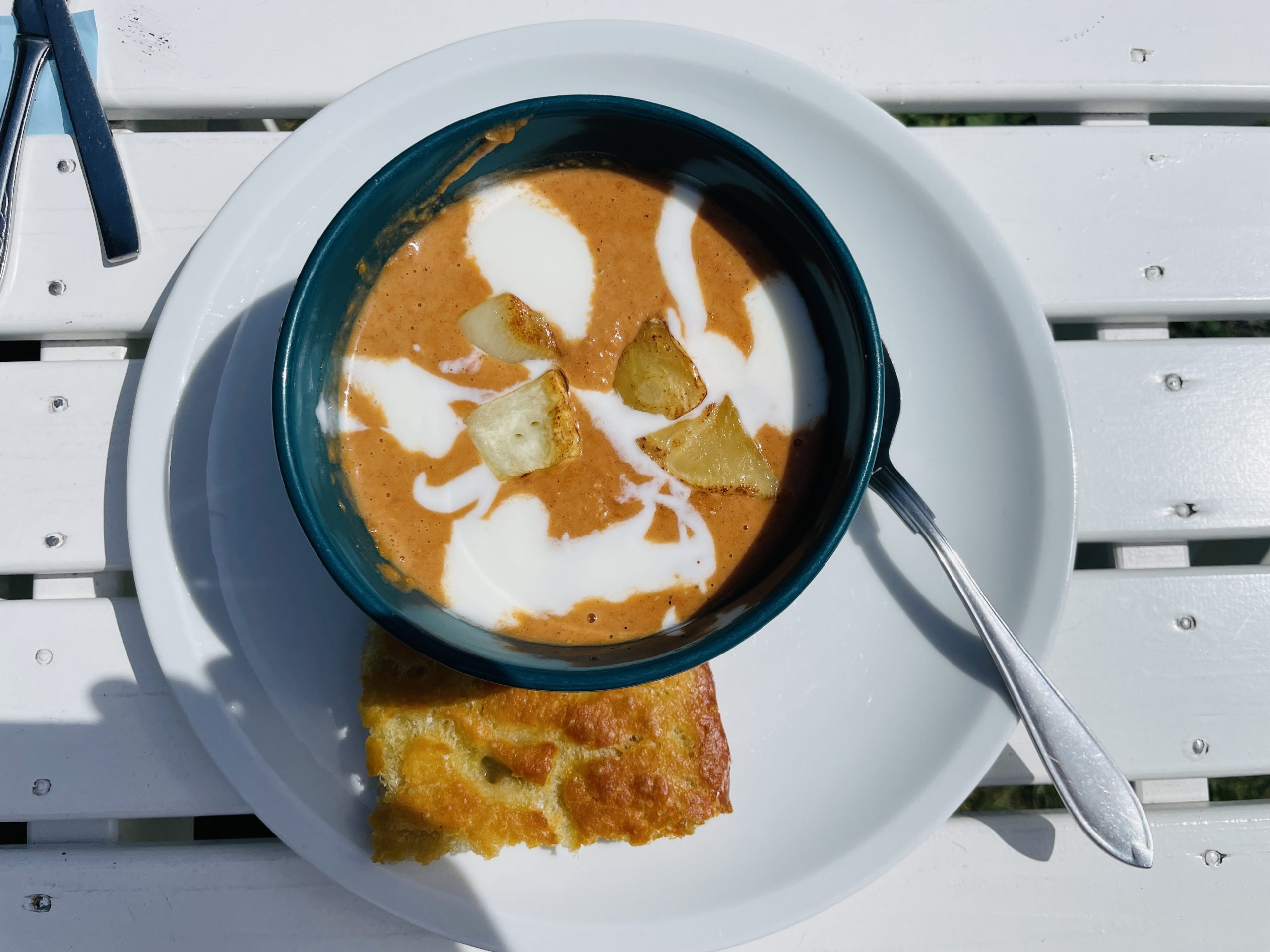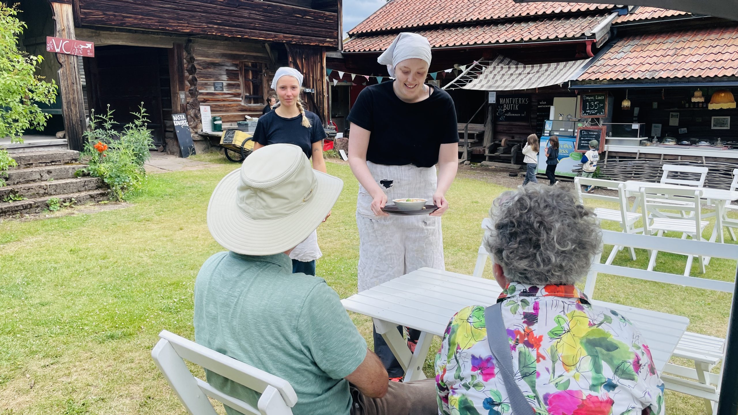 Just den här dagen var det soppa med vitlöksfocaccia på menyn, en mustig soppa som mättade gott under den molniga himlen. Nya besökare strosade in genom portlidret och kikade nyfiket runt bland de gamla byggnaderna.