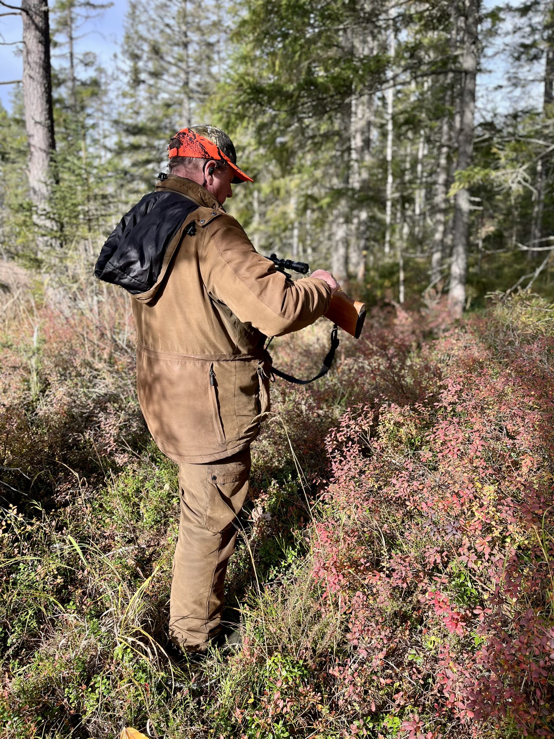 Det är en nöjd Ingemar Hällström som njuter av att årets jakt dessutom förgylls av värme och höstsol. Han behöver inte längre möteskallelser, voteringslistor eller budgetförhandlingar. Här räcker det med ett knak i mossan.