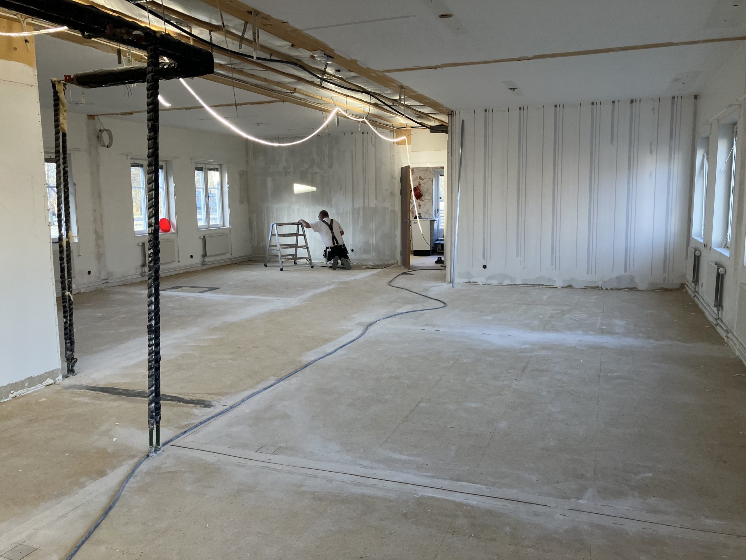 — Vi har verkligen frilagt hela ytan och öppnat upp planlösningen. Tidigare var det många små rum, men nu blir det en stor, öppen yta som passar bibliotek mycket bättre.