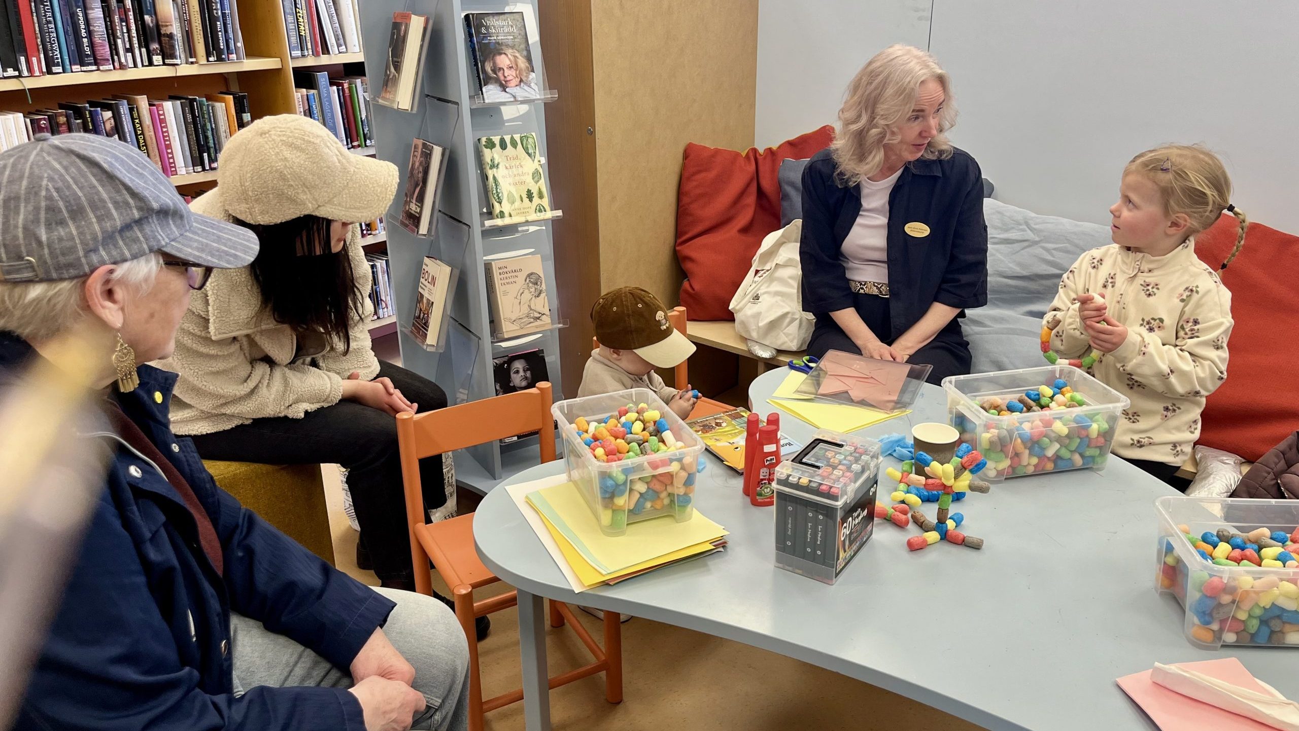 — Vi har gått förbi här varje dag till förskolan, så nu kändes det roligt att komma hit och se hur det blivit, berättar en småbarnsmamma och tillägger att hon redan imorgon kommer tillbaka på sagoyoga. Redan under första veckan hålls flera aktiviteter i kreativitetens tecken.
