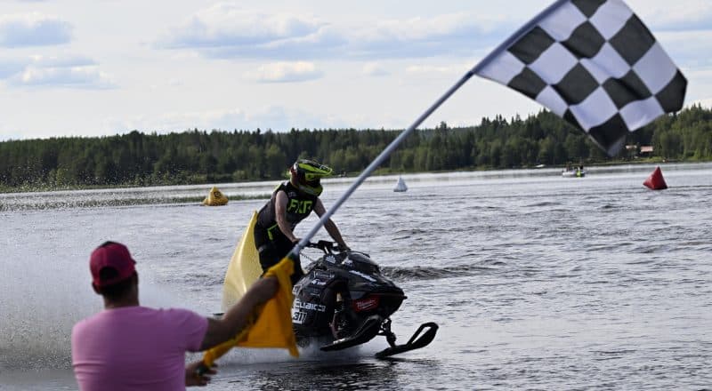 Om Jonatan hade lätt att hålla sig för skratt så gällde det inte Adam Renheim. Limaåkaren som vunnit det mesta som går att vinna i skotercross, men då på snö, fick nu äntligen vinna på vatten.