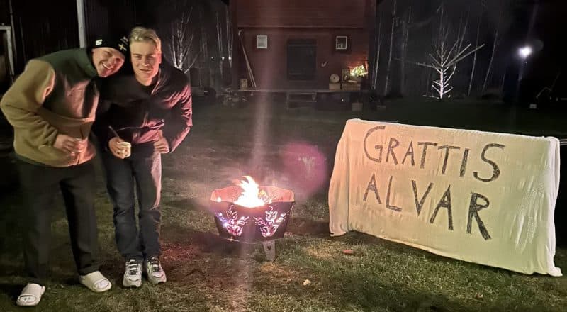 Efter världscuphelgen i Trondheim med den historiska pallplatsen tog Marcus med Alvar hem till Orsa för lite firande.