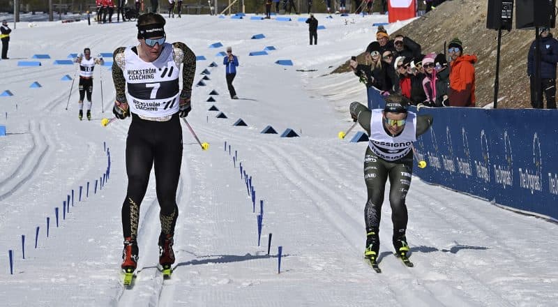 Gabriel Strid var med i tätklungan från start till upploppet, men där höll allt på att gå åt skogen. Gabriel snubblade till och Johannes Eklöf som var på väg att acceptera en andra plats hann byta spår och pressade Gabriel hela vägen in över mållinjen. Men det var Gabriels tå som var längst fram och efter fem mils skidåkande kunde han fixa sin första långloppseger i säsongens sista långlopp.
