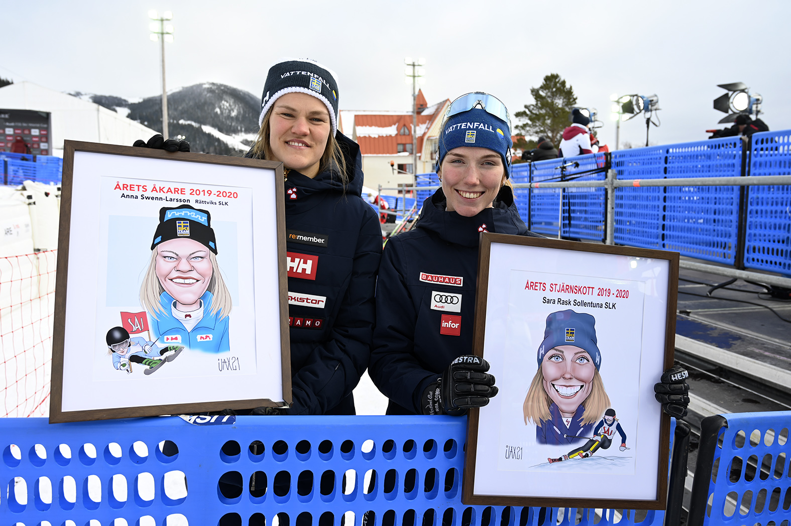 När Anna Swenn Larsson fick följa tävlingarna från sidan, så kunde hon åtminstone trösta sig med att tillsammans med Sara Rask belönas med Sveriges Alpina Journalisters pris för årets åkare 2019-2020. För Saras del handlade det om ”Årets stjärnskott” efter fjolårets JVM-guld.