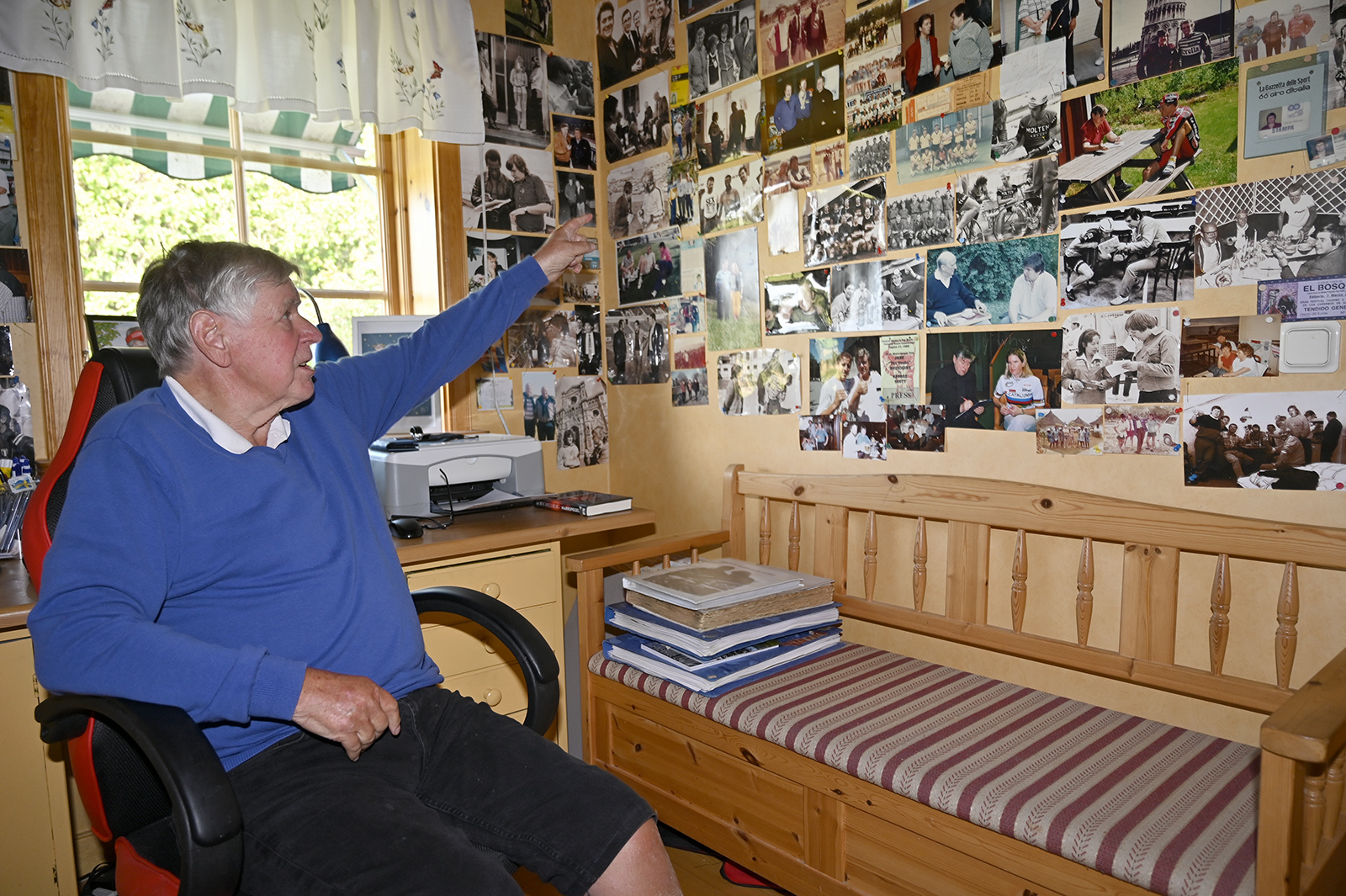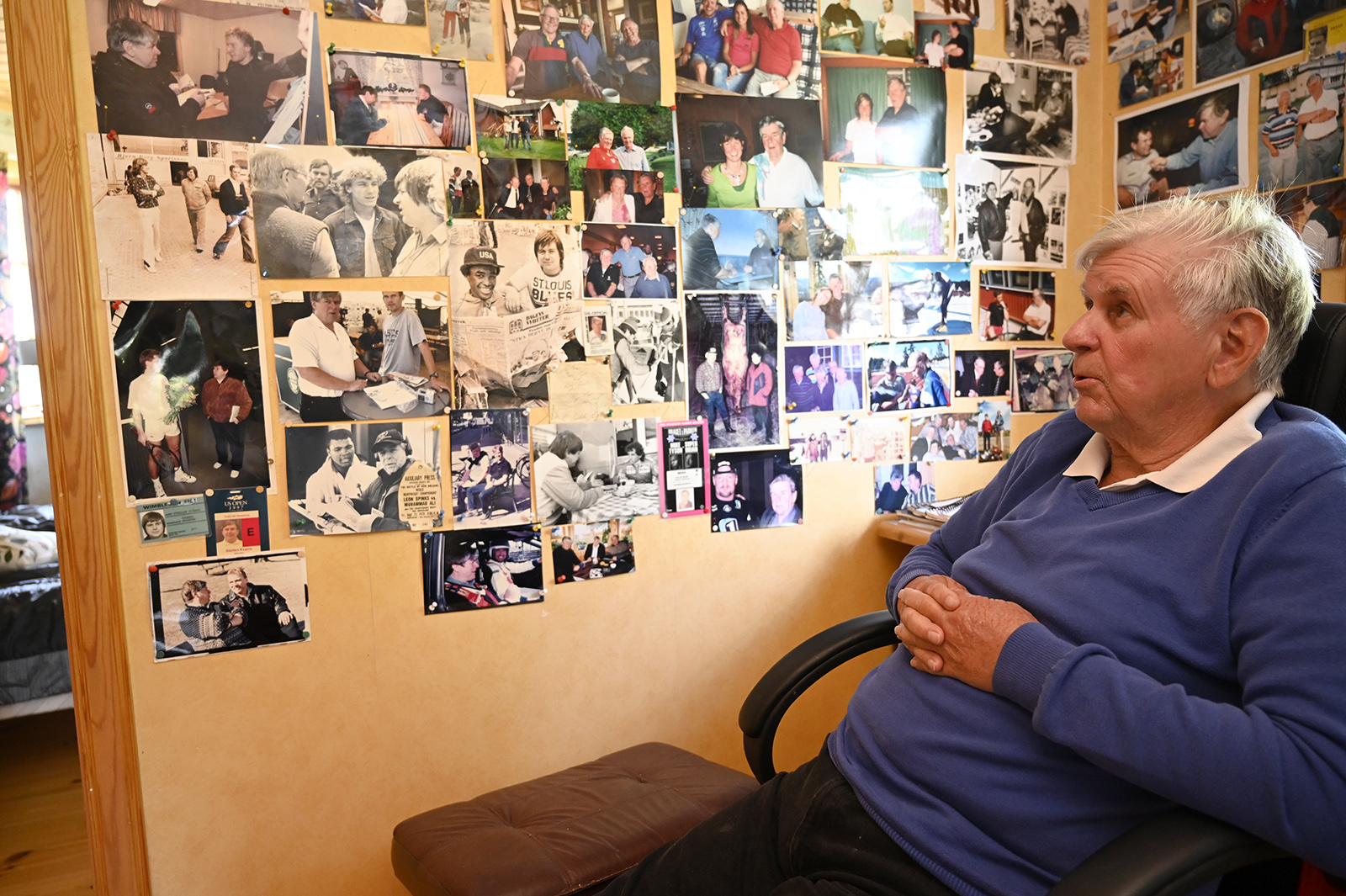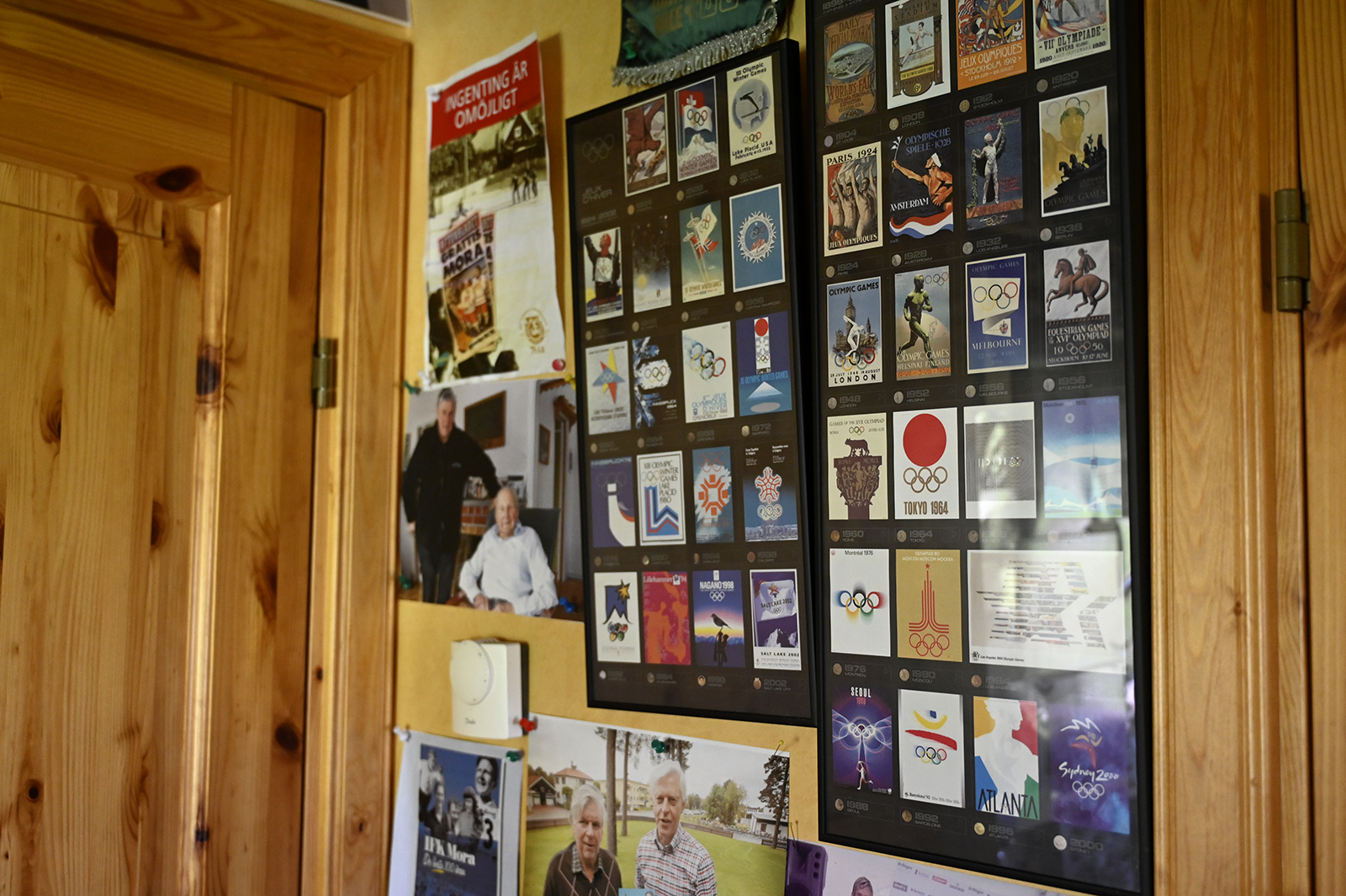 — Sambon är inte så förtjust, hon tycker att folk ska slippa se bilderna. Jag har bilderna i ett litet undanskymt rum och det är där jag sätter mig när jag ska skriva, omgiven av alla idrottare jag träffat så ger det mig inspiration, säger det levande idrottsoraklet.