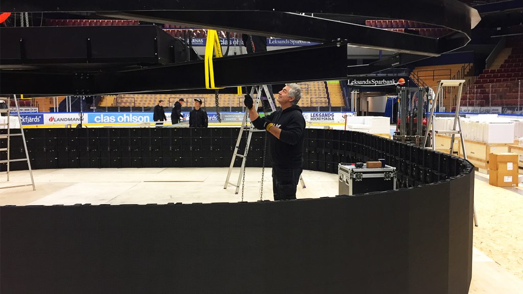 Nu är dock den gamla kuben, vars bildyta var 52 kvadratmeter, ett minne blott. Istället monteras nu den nya kuben ihop som har en totalbildyta på 160 kvadratmeter i högsta HD-kvalitét.