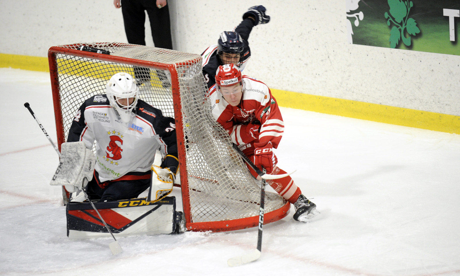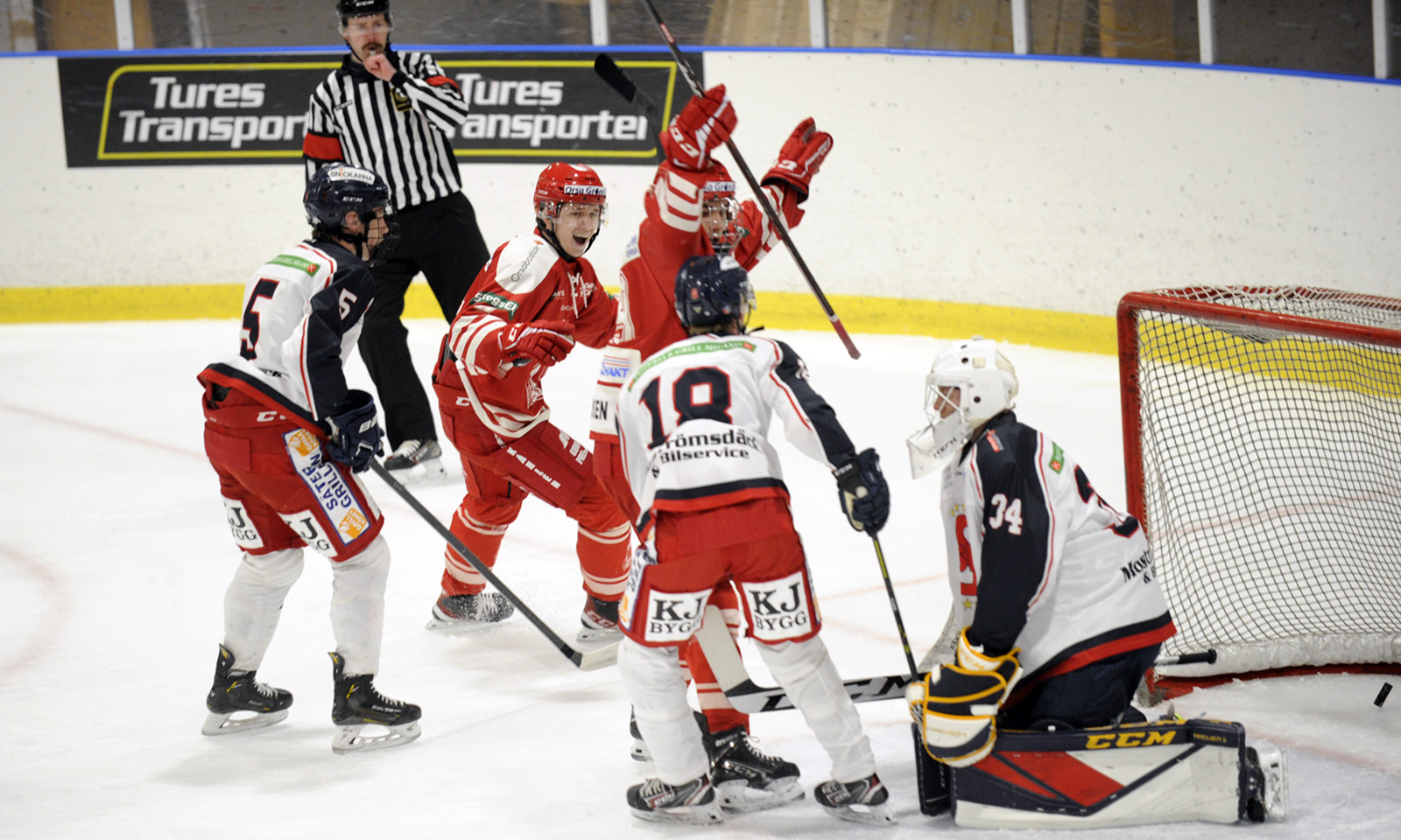 Sonny Karlsson skickade in en puck från dålig vinkel efter att ha rundat kassen. Där framme fanns Samuel Hansen som såg ut att styra in pucken, men pucken kan ha tagit på en Säterspelare då Karlsson noterades för målet.