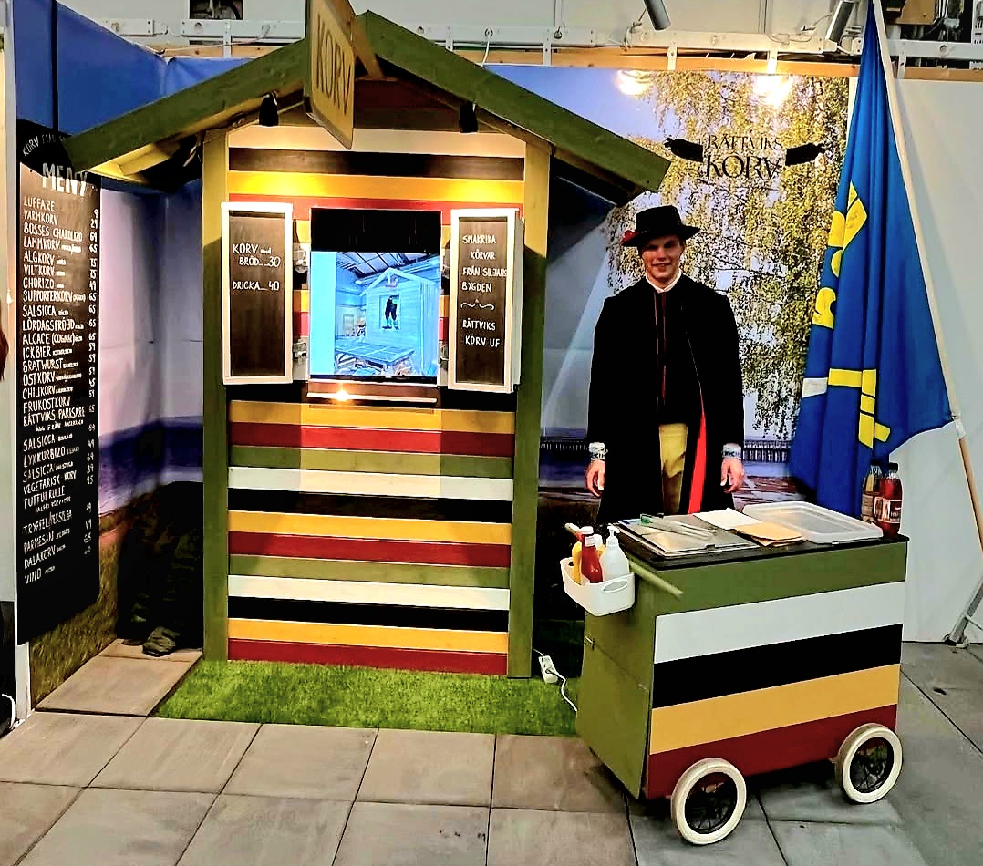 Det som började med ett UF–företag med en egenbyggd korvkiosk har blivit en självklar samlingsplats de dagar han håller kiosken öppen på torget. Hans UF-resa slutade i våras med succé på SM i Ung Företagsamhet i Stockholm där han kammade hem priset för Årets monter.
