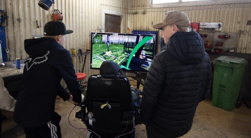 Två av stationerna var i en stor maskinhall, där man ställt upp traktor- och skogsmaskinssimulatorer. Något som Älvdalens Utbildningscentrum har med i sin undervisning.