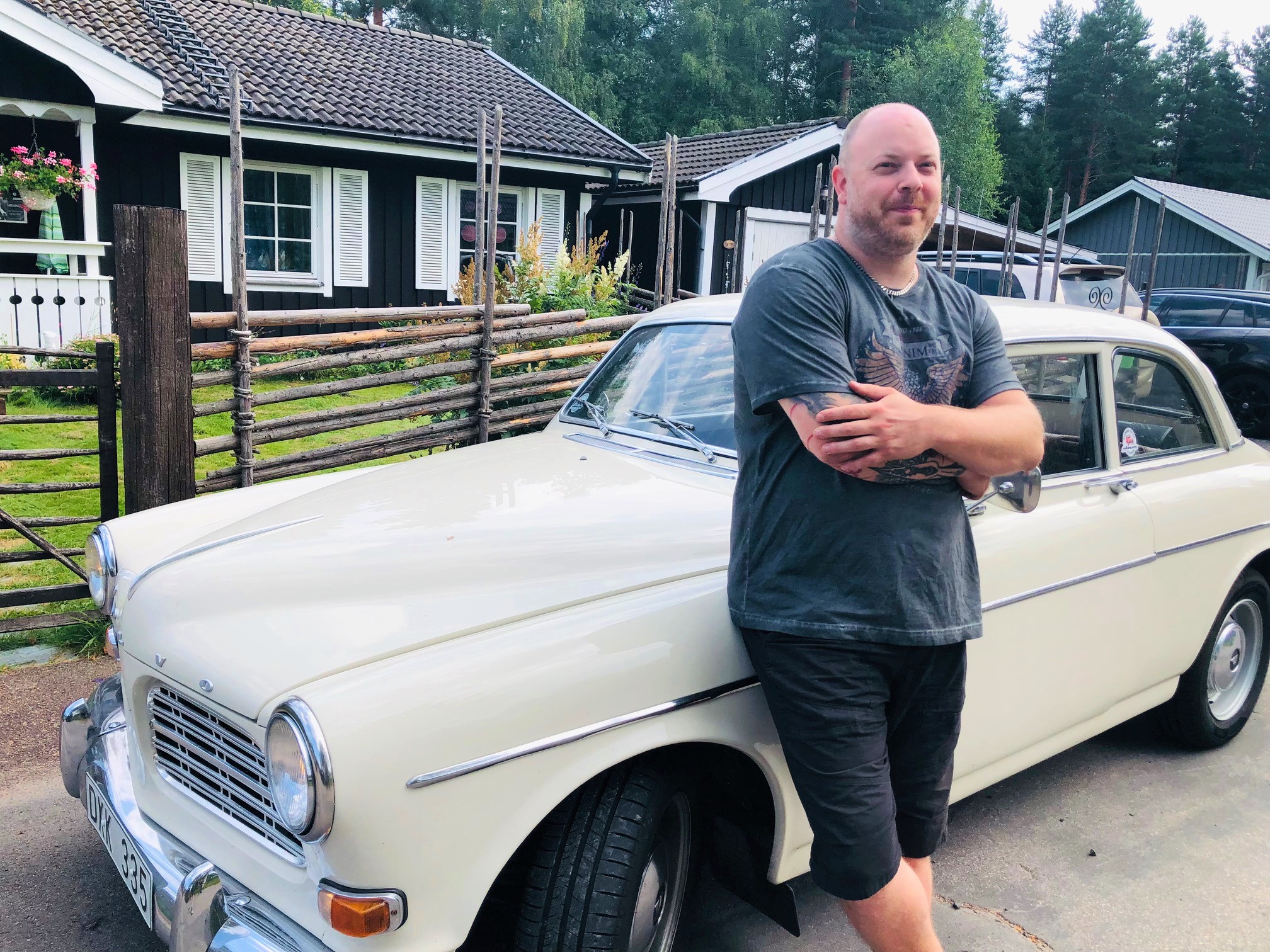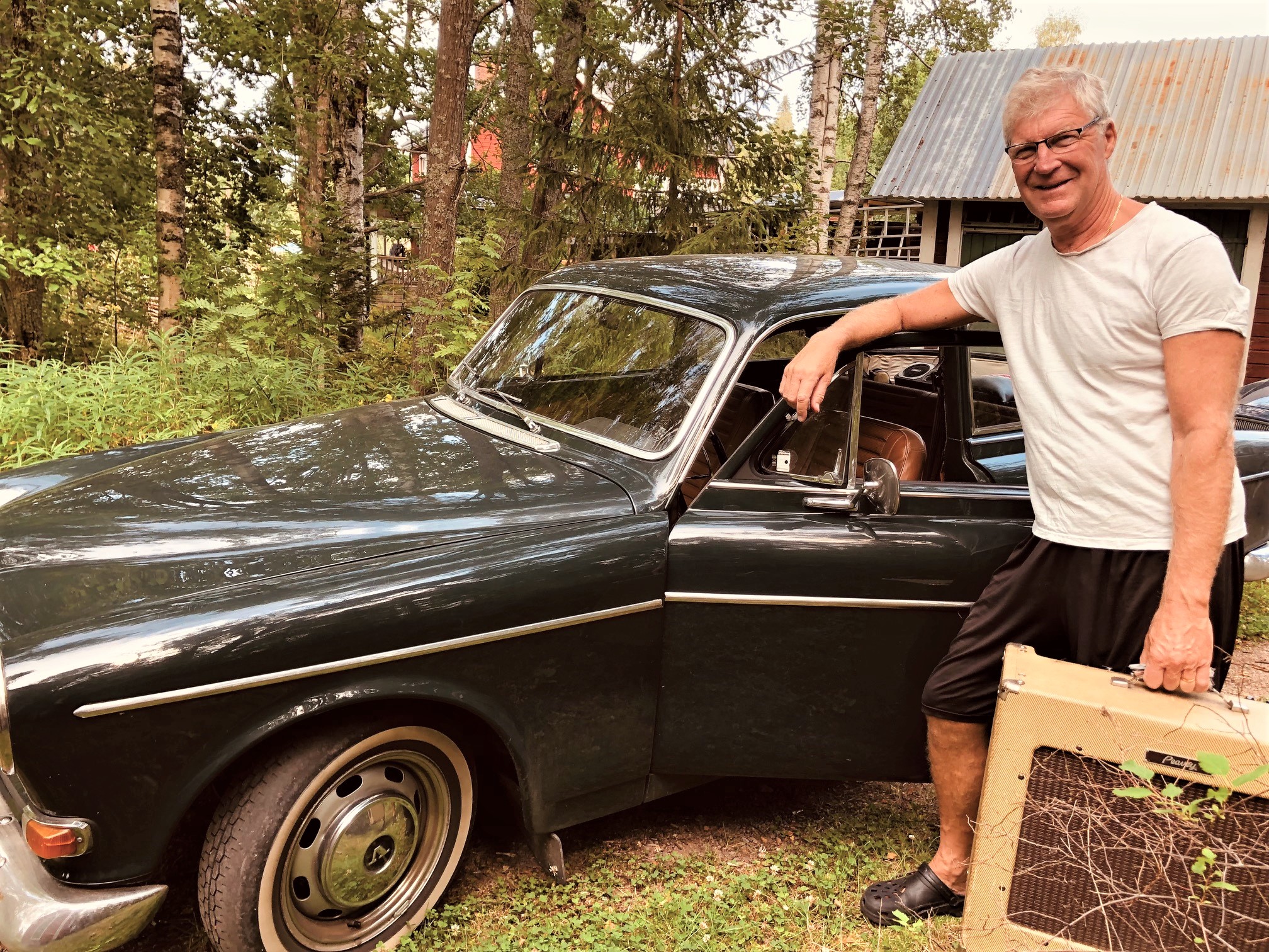 Hemma i garaget har Anders Hed själv en klenod i sin ägo. För sju år sedan köpte och renoverade han Lars Wanfors (Svenne Rubin) gamla califonrniavita och rostiga Amazon. Det var även den här bilen som gav inspiration till deras stora hit ”En gammal Amazon”.