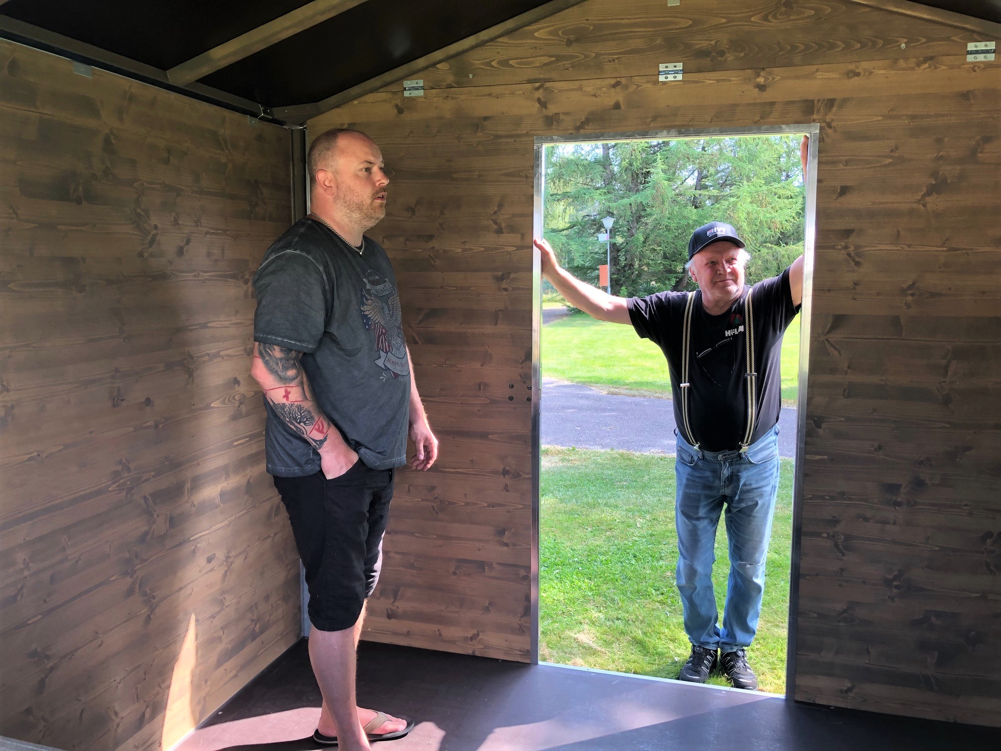 På campingen har sju pop-up stugor slagits upp där medlemmar som inte har husvagn eller tält kan sova under de tre intensiva dygnen. Att det är en del att fixa med när entusiasterna som helst kör gammal Amazon träffas i Vansbro är väl synligt när Anders Hed och medlemmarna rusar runt och ställer allt på plats inför träffen.