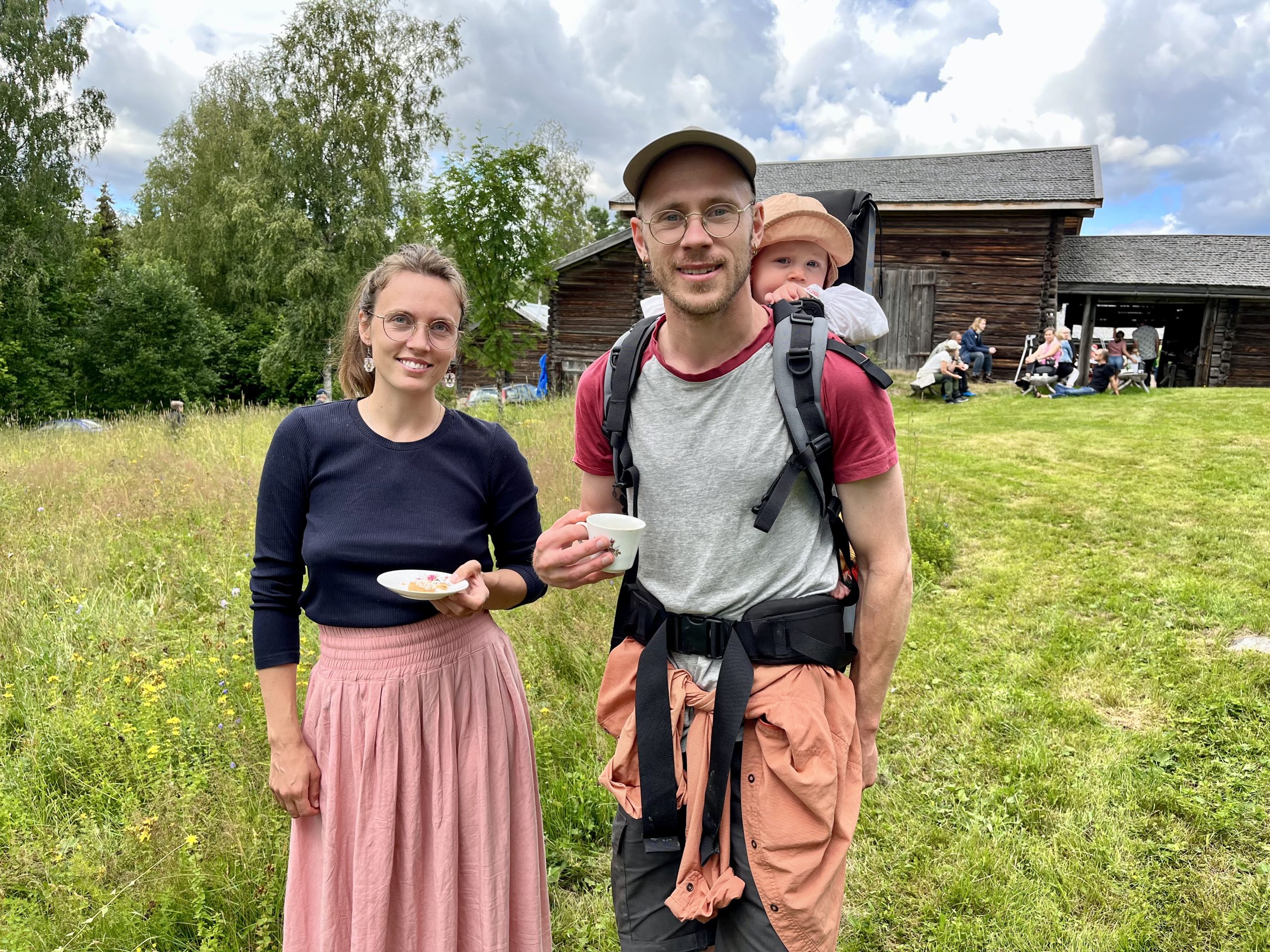 På besök från Norge var Idun Krossöy, Axel Högberg och sonen Falke som dagen till ära klätts i Nåsdräkt av svärmor som tagit med dem alla till Lisskvarngården.