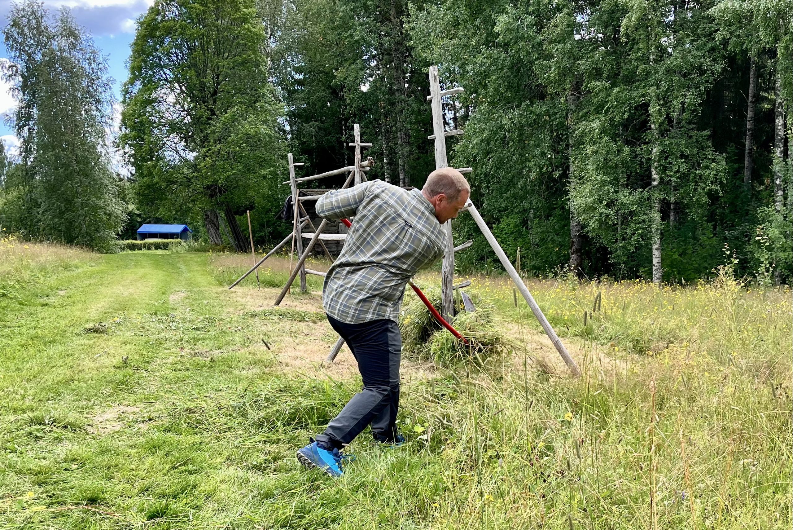 En gång om året samlas man vid Lisskvarngården i Nås för att på gammalt vis slå gräset och hässja hö.