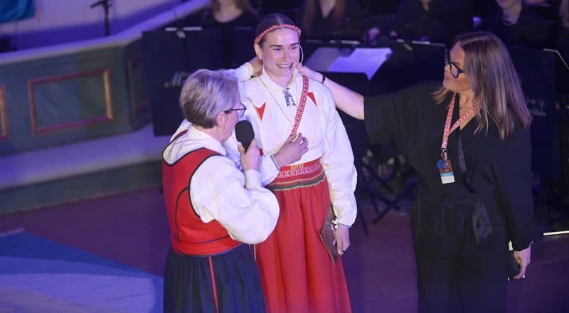 Både Mora församlings tillförordnade kyrkoherde Lena Budh och konferencier Viktoria Stärner sa några väl valda ord. Men det fanns andra röster som stod desto mer i centrum. Inte minst gällde det kvällens huvudperson, kranskullan Maja Stefansson.