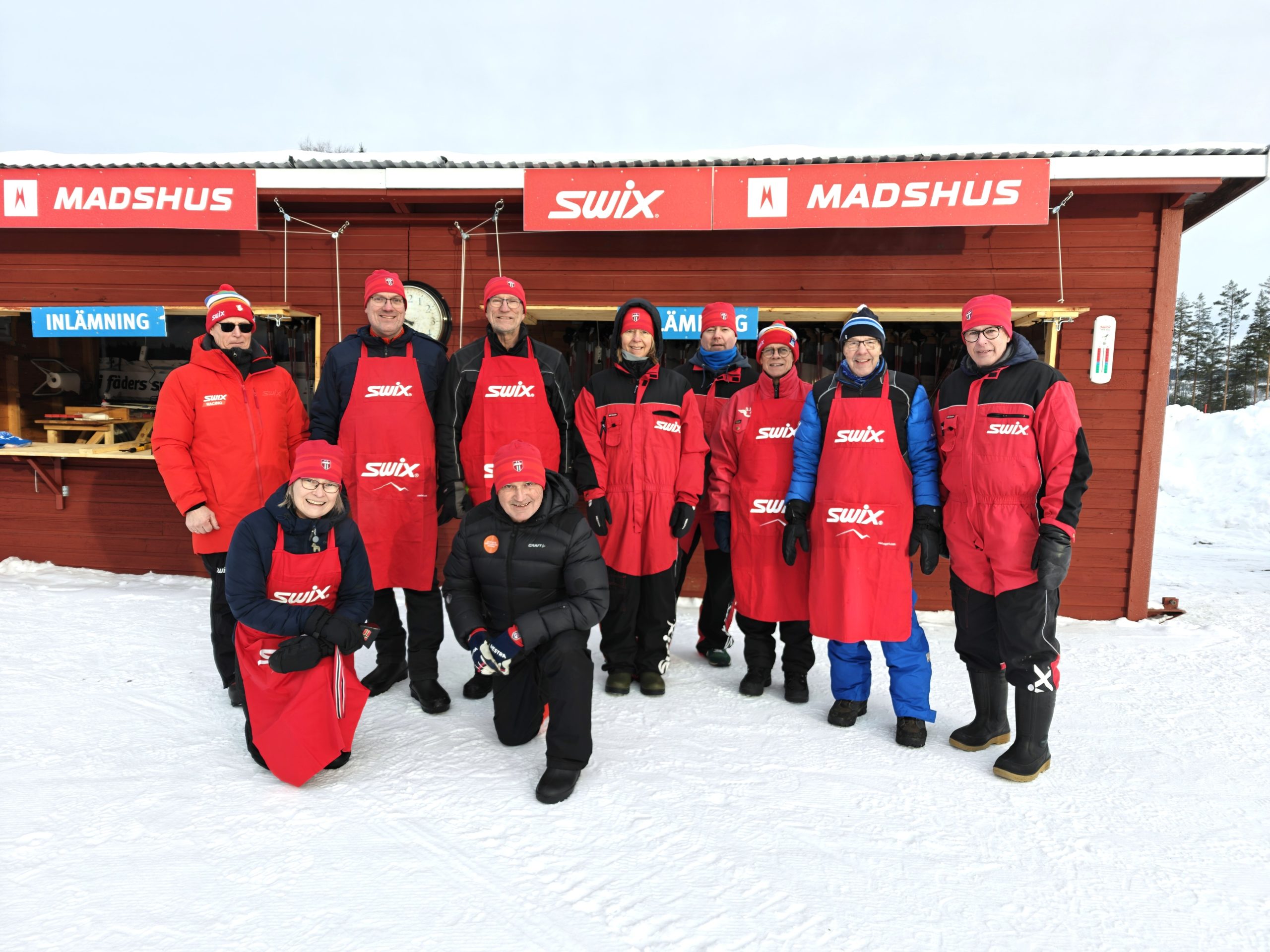 I en av bodarna intill spåret kommer ett vallateam från Swix stå under veckan. De är här från arla morgonstund och väntar på att de tappra själarna ska skida in mot dem.