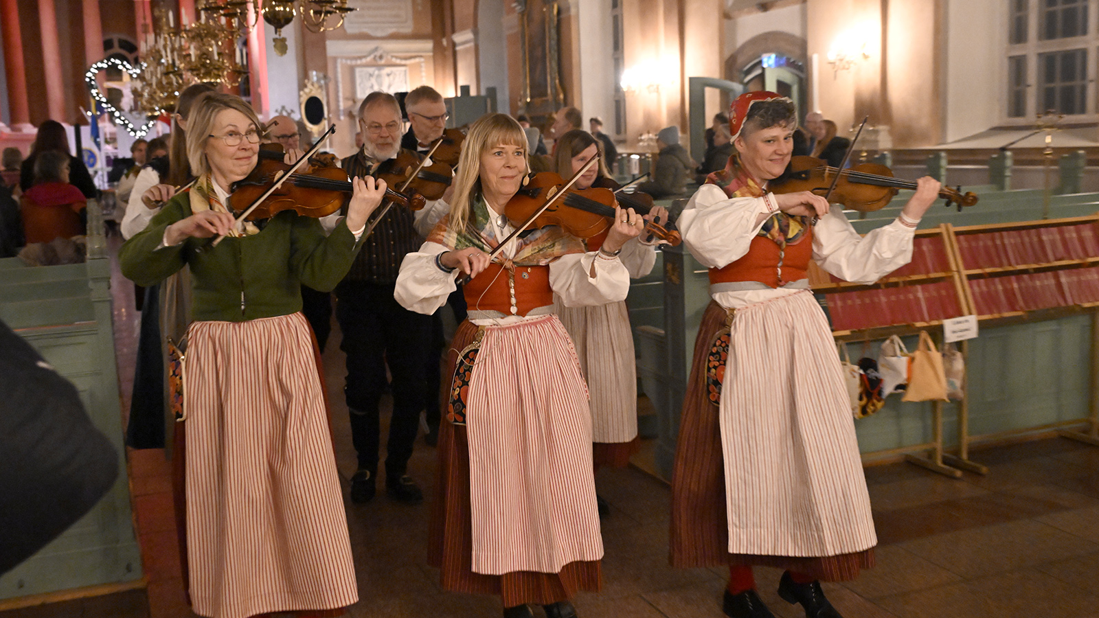 Innan Älvdalens spelmanslags utmarsch bjöds det också på klassisk musik av kanor Gunilla Albertsdotter och Clara Ranefors från musikskolan på fiol, som stämningsfullt framförde Bachs Air.