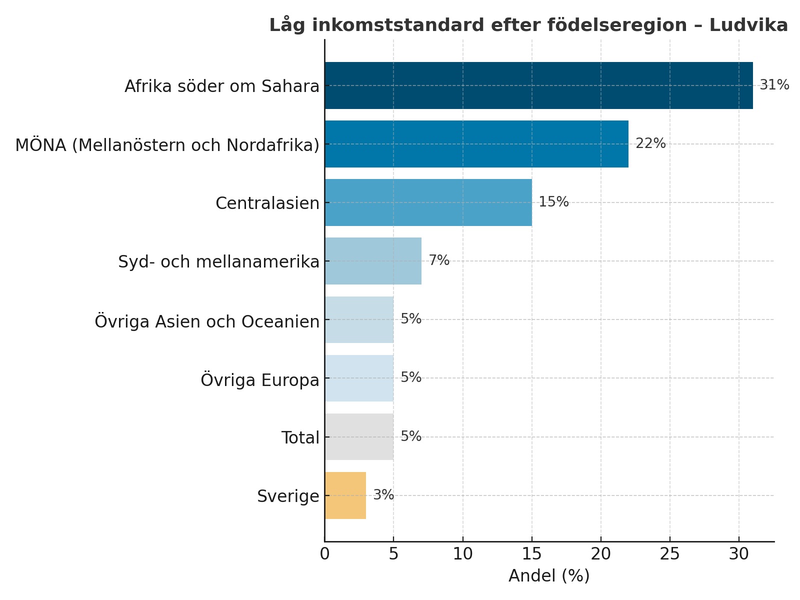 Ludvika är den kommun i Dalarna där flest familjer har så låg inkomst att pengarna inte säkert räcker till det mest nödvändiga.